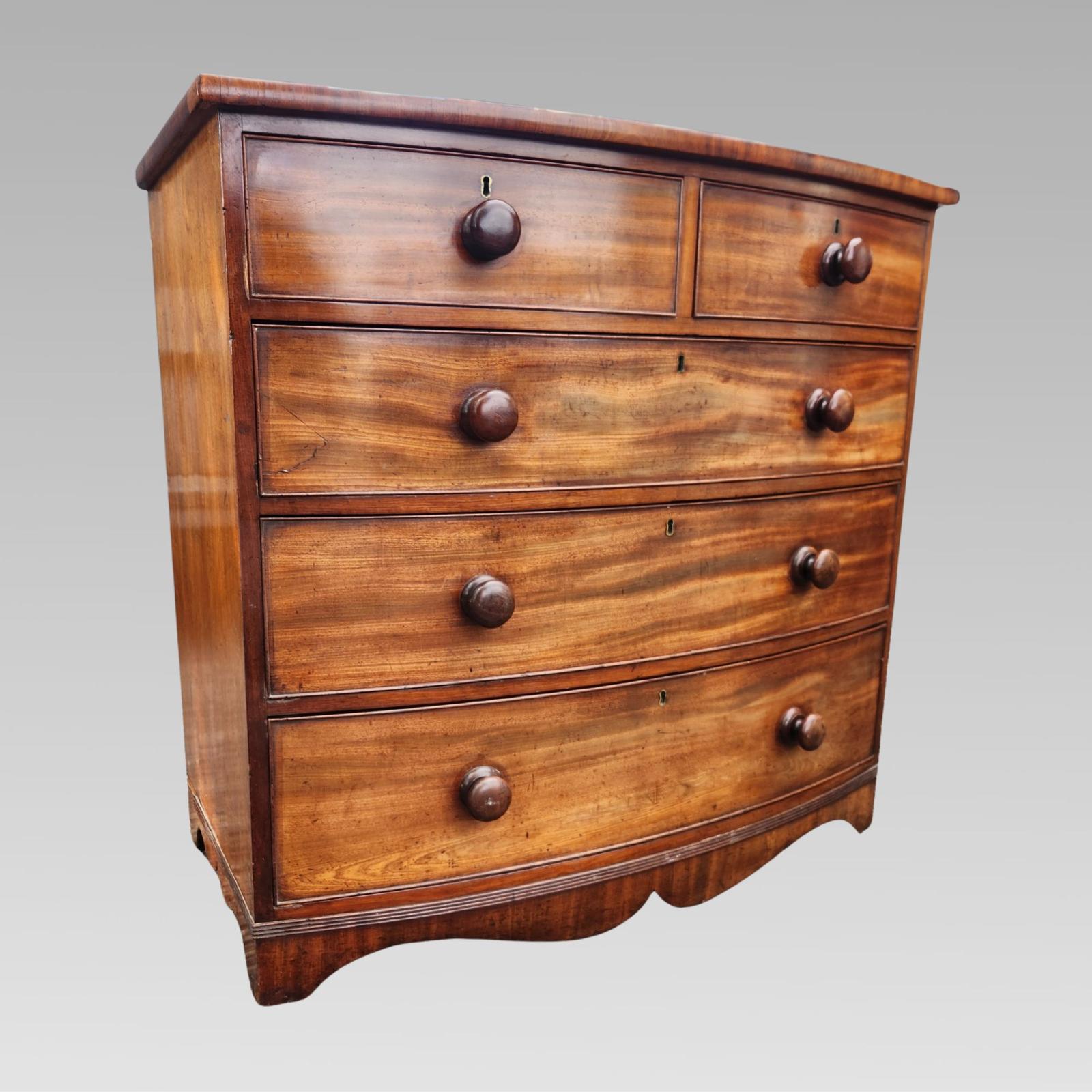 Fabulous size and all original in great condition for age, a few incidentals as shown in the photographs as to be expected of a chest of this age, wonderful bow fronted example with turned knob handles and lined drawers.