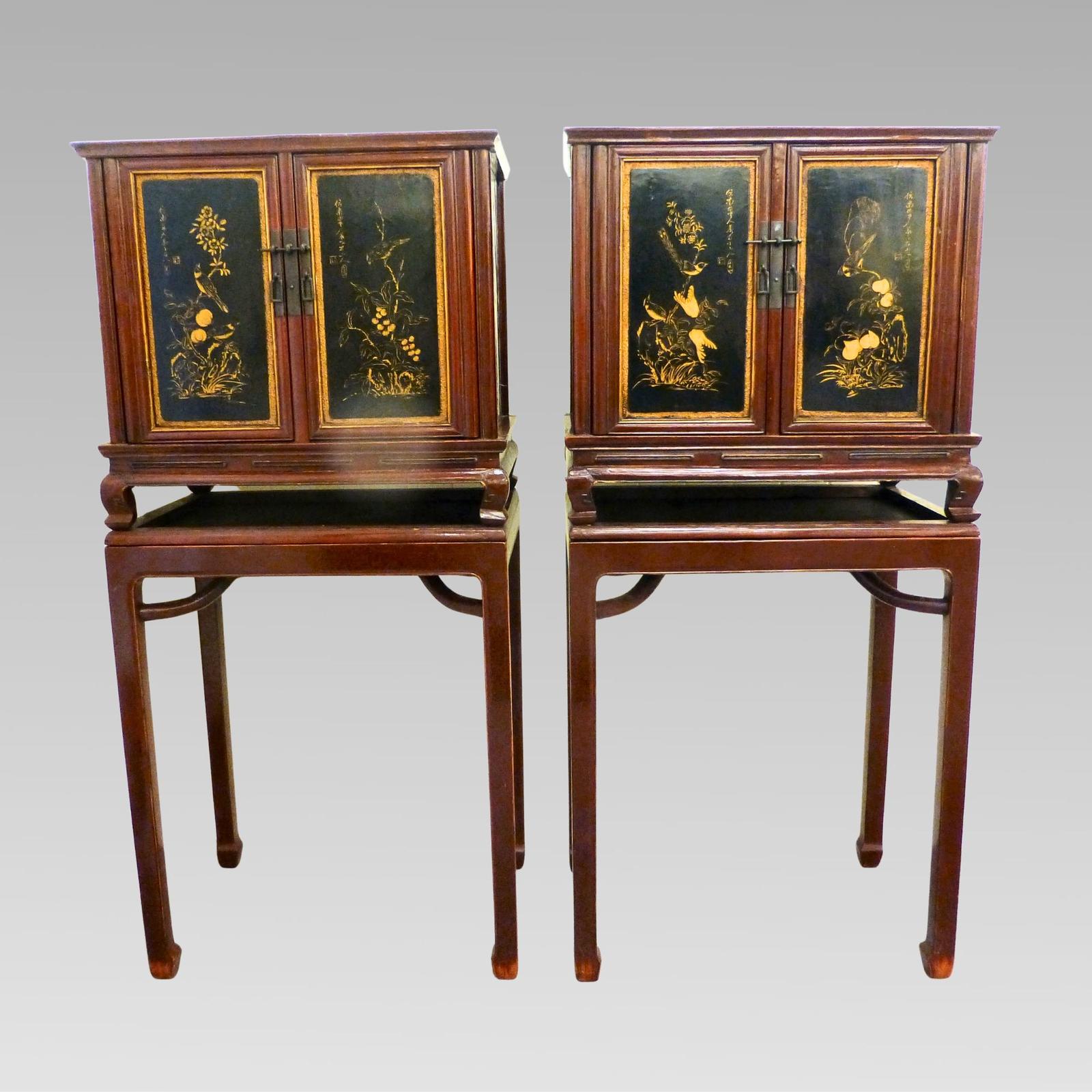 Chinoiserie Chinese Storage Cabinets Cupboards Oriental Black Lacquer Storage Cabinets Cupboards on Stands